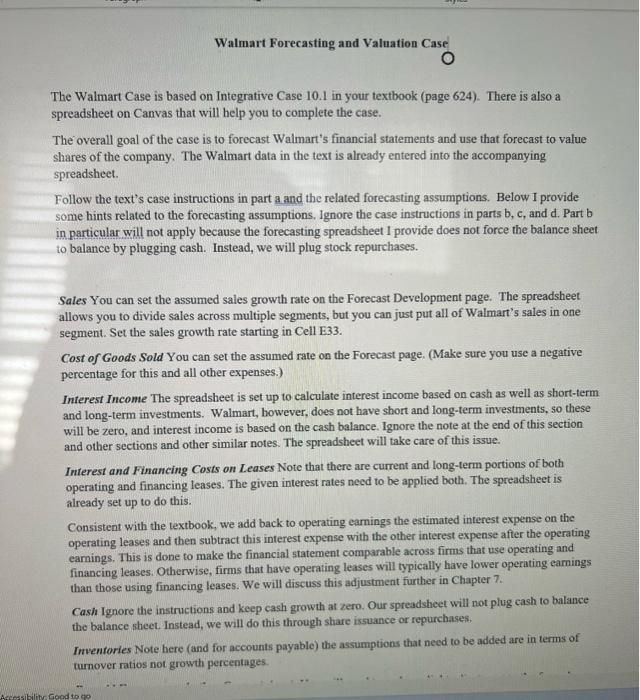 Walmart Forecasting And Valuation Case The Walmart Chegg Com